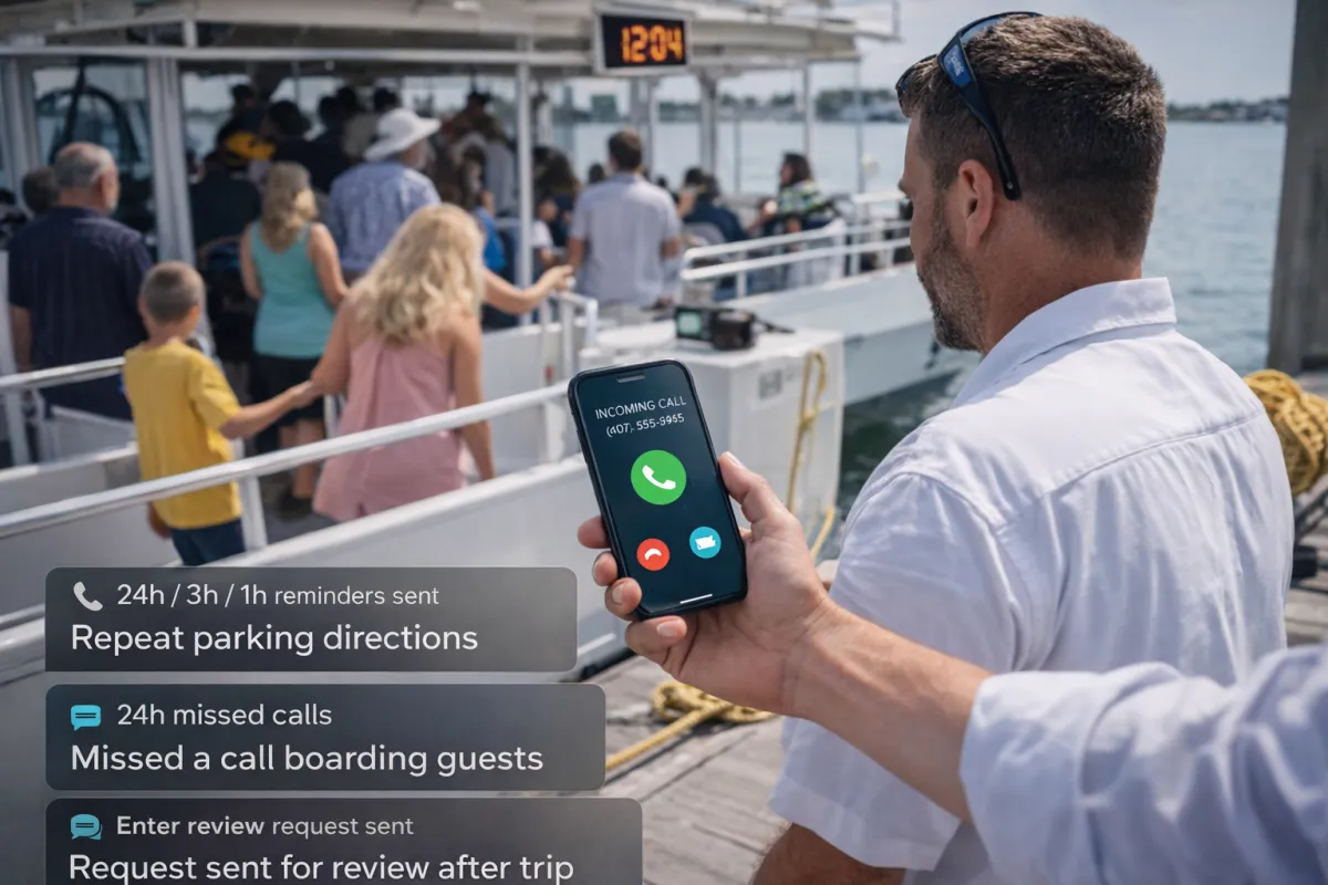 TourLogic replaces confirmations, reminders, missed calls, FAQs, reviews, and repetitive guest messaging — so you can run trips without expanding staff or draining your focus.